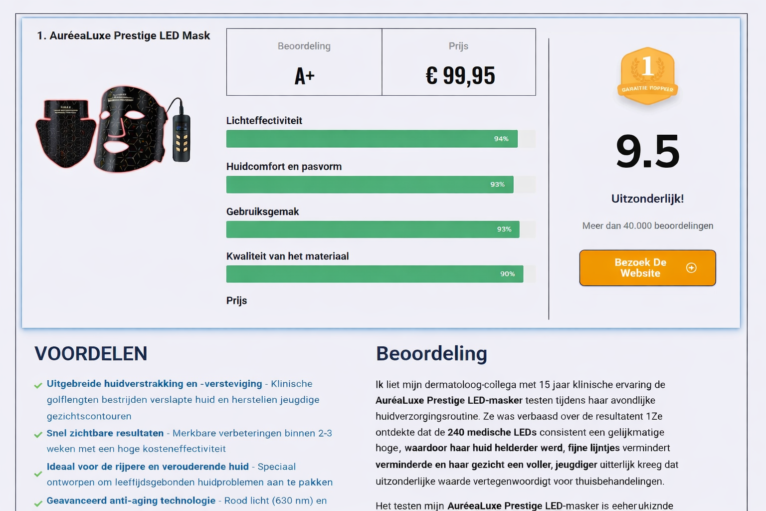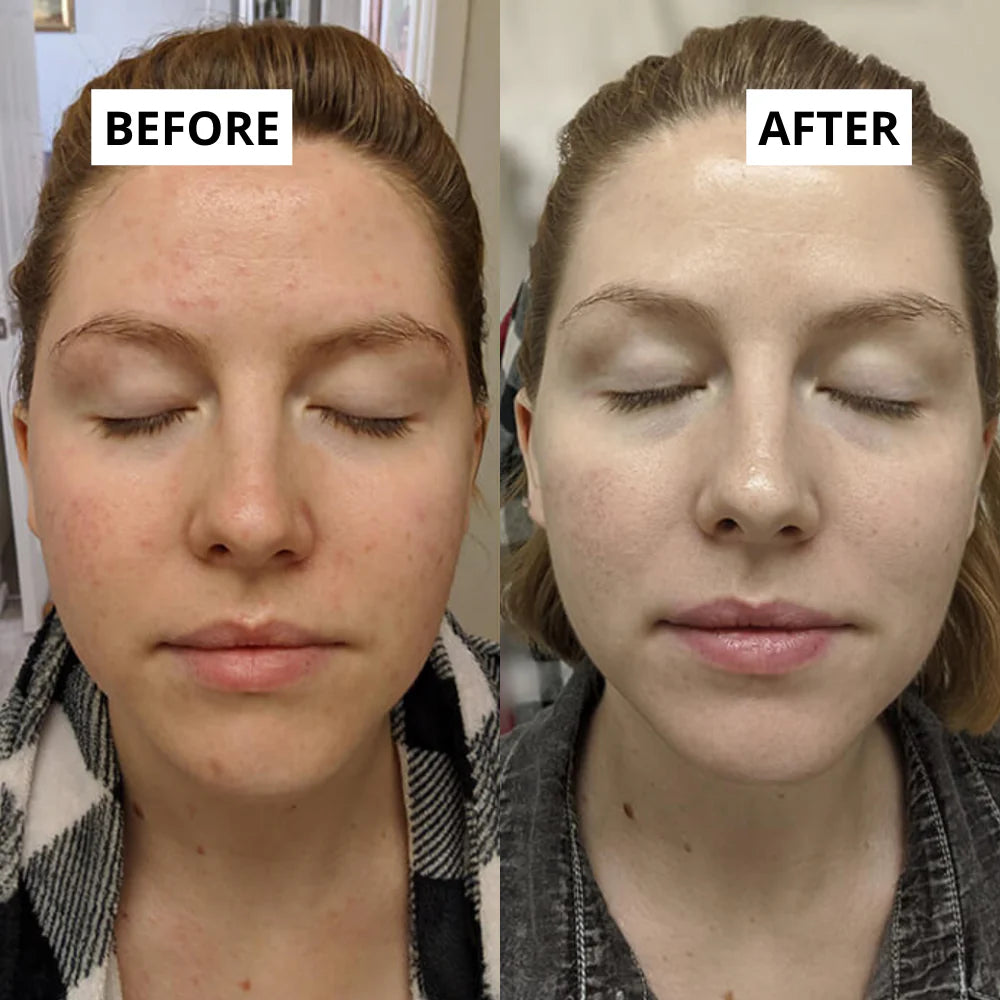 Blauw licht (golflengte 465 nm) bestrijdt oneffenheden en verheldert de huid zichtbaar.