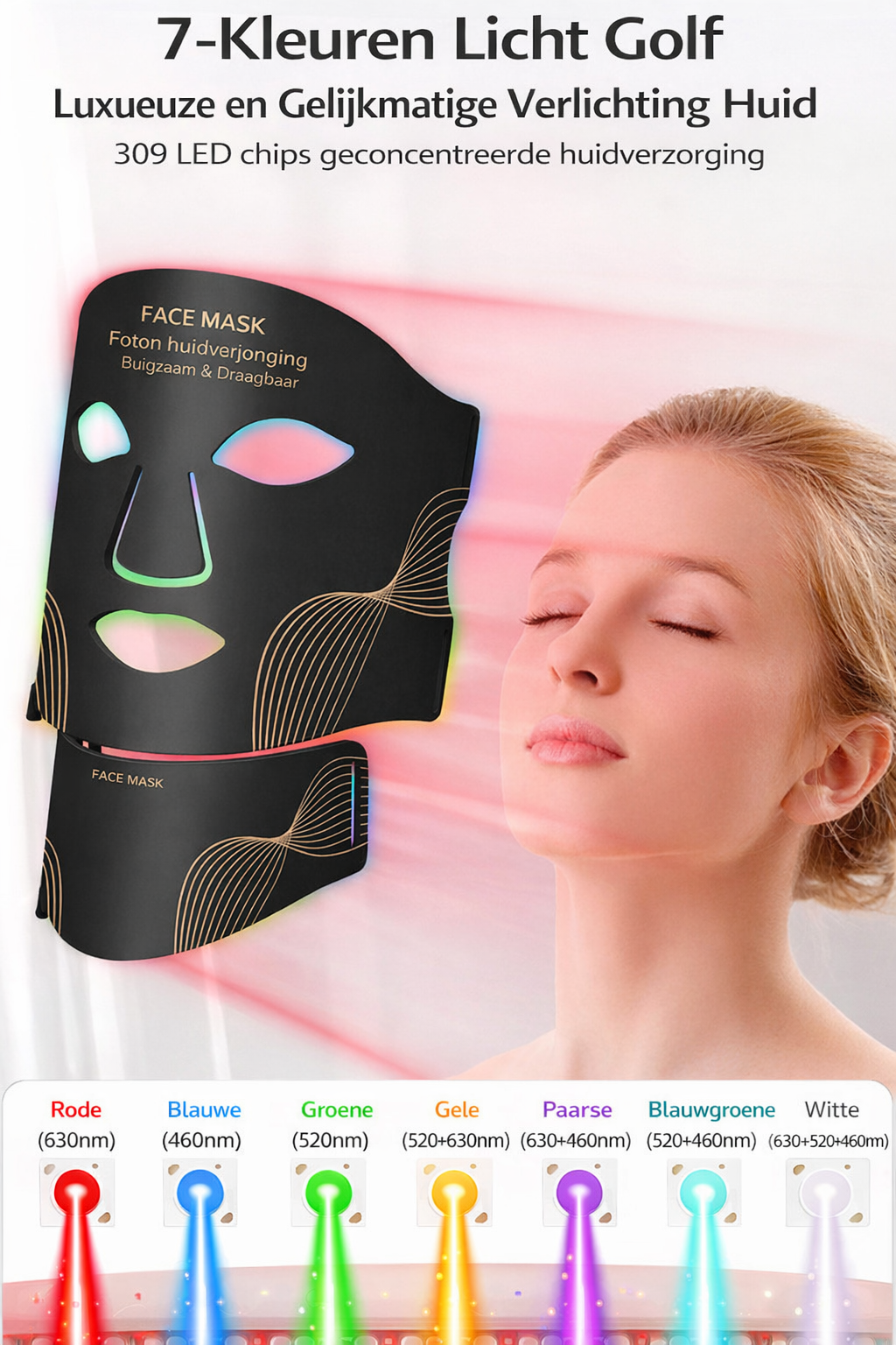 Witte licht (golflengte 580 nm) egaliseert de huidskleur en vermindert rimpels.