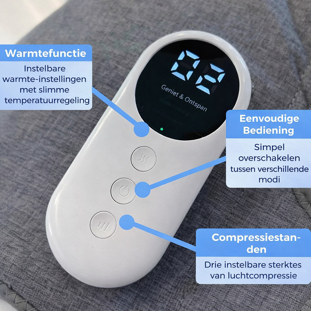 Lunéra Heat & Air massageapparaat is ontwikkeld met professionele inzichten en biedt gerichte ondersteuning bij uiteenlopende beenklachten. Het kan helpen bij ongemakken zoals spataderen, vochtophoping, verminderde doorbloeding, zenuwpijn, spierkrampen, rusteloze benen en herstel na een operatie.